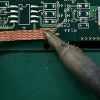 この時のコテ先温度は、(はんだ吸い取り線に熱を奪われることを考慮して)はんだ付け時よりも10℃くらい上げておくと良いでしょう。