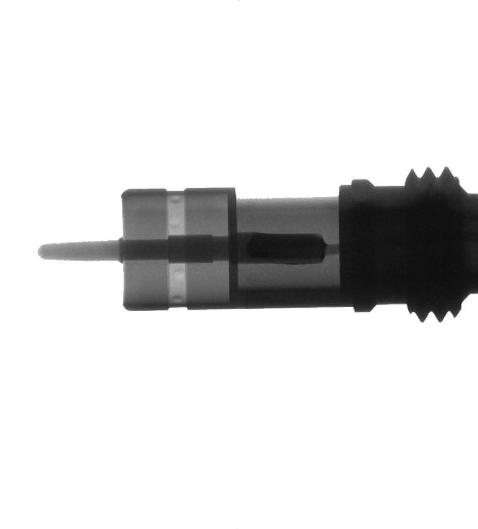 内容は、中国工場で製造した同軸ケーブルが、導通する時としない時があり、ケーブル内での接触不具合が疑われることから、現物の内部を非破壊で品質確認を行いたいとの相談でした。