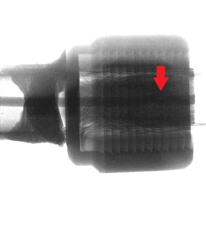 同軸コネクタ部は、特に金属が厚いため更に拡大して撮影したところ、何となく気になる(怪しそうな)場所を発見!